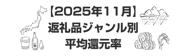 還元率の高い返礼品から集計したジャンル別の平均還元率です。食品系ジャンル(精肉・魚介類・スイーツなど)は、相対的に還元率が高い傾向にあり、特に「精肉・肉加工品」「惣菜」「魚介類・水産加工品」などで還元率が50%近くに達しています。一方、工業製品やチケット類、通貨価値に近い商品(腕時計・家電・カタログギフトなど)は還元率が低めで、30%前後となる傾向があります。